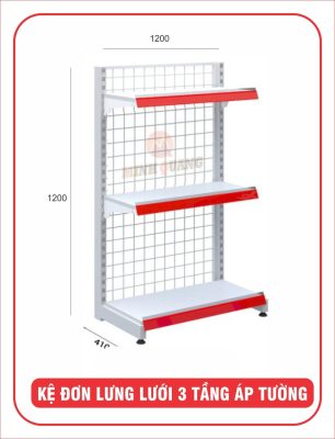 Kệ Đơn Siêu Thị 3 Tầng Lưng Lưới-C120*D120(cm)