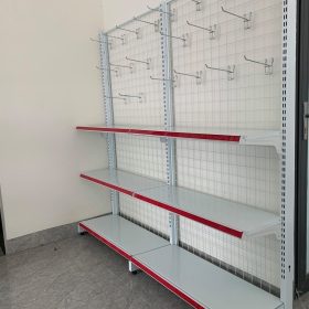 -Đối với các cửa hàng, siêu thị diện tích nhỏ, việc tối ưu không gian trưng bày là vấn đề cần được ưu tiên hàng đầu. Do đó, mẫu kệ đơn lưng lưới là giải pháp tốt nhất giúp tiết kiệm diện tích. Ngoài tăng khối lượng hàng hóa trưng bày, thiết kế mặt lưng bằng khung lưới đan ô vuông sơn tĩnh điện giúp không gian trở nên thông thoáng hơn